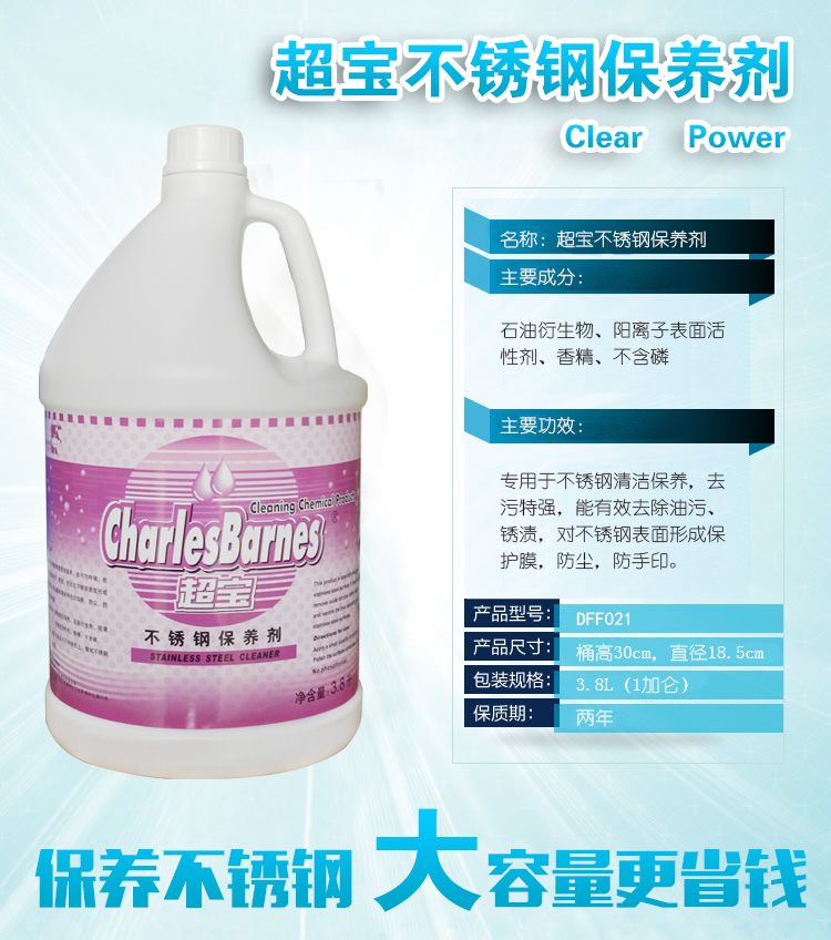 專用于不銹鋼清潔保養,去污力強,能有效去除油污、銹漬 、對不銹鋼表面形成保護膜,防塵,防手印。
